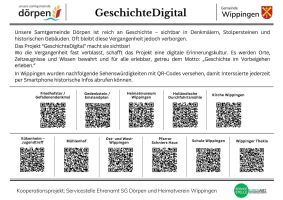 Gemeinsam haben die Servicestelle Ehrenamt und der Heimatverein Wippingen das Projekt zur Stärkung der digitalen Erinnerungskultur umgesetzt. Sehenswürdigkeiten, Denkmäler und geschichtsträchtige Orte wurden mit QR-Codes ausgestattet, über die Interessierte die historischen Hintergründe digital und direkt vor Ort abrufen können. So wird die Erinnerung daran bewahrt und erhalten.