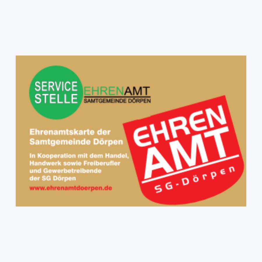 Das ist der Ansatz, nachdem eine Kooperation mit dem Handel, Handwerk sowie Freiberufler und Gewerbetreibende der SG Dörpen in Zusammenarbeit mit der Servicestelle Ehrenamt eine Ehrenamtskarte für langjähriges ehrenamtliches Engagement herausgibt. Die Inhaber einer Ehrenamtskarte profitieren von zahlreichen Vergünstigungen, prozentualen Nachlässen und Gutscheinverteilungen in den Geschäften. Die Servicestelle Ehrenamt erstellt und vergibt die Ehrenamtskarten.