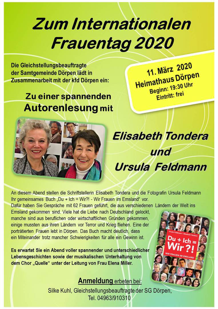 An diesem Abend stellen die Schriftstellerin Elisabeth Tondera und die Fotografin Ursula Feldmann Ihr gemeinsames Buch „Du + Ich = Wir?! - Wir Frauen im Emsland“ vor. Dafür haben Sie Gespräche mit